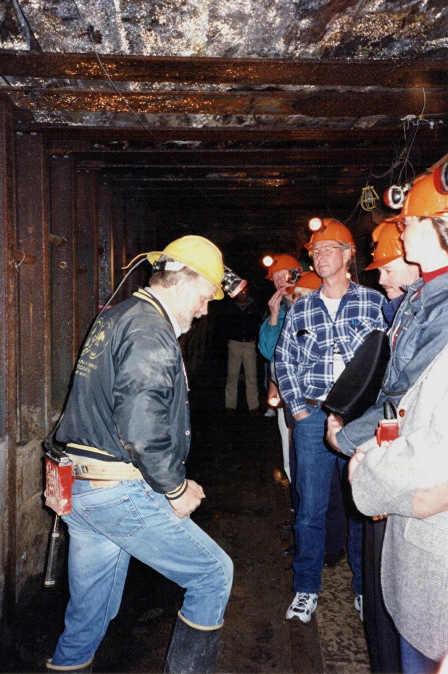 Tour leader, Marcus Day, explains the operation of the historic Lexington Mine and the work done by the New Butte Mining Company in the 1980s and 1990s. |