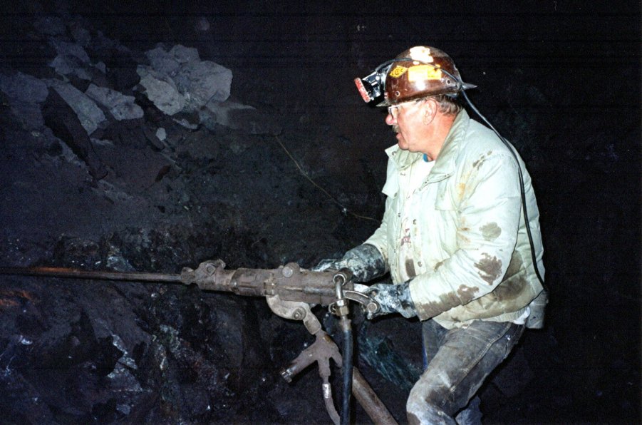 (Above) Tom Rosemeyer fires up a jackleg at a pillar that was producing good copper crystals.