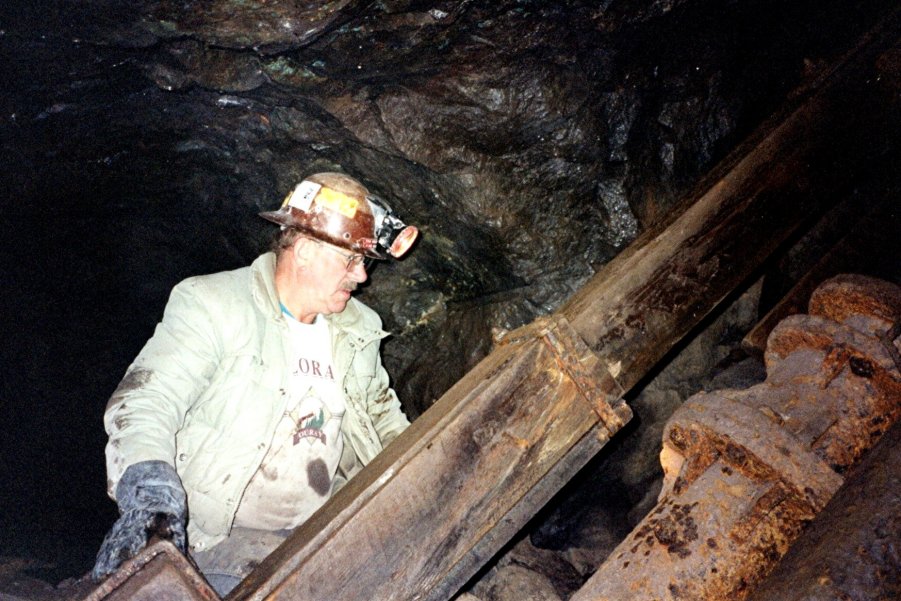 Mark Langenfeld inspects a small,19th-century skip in the Knowlton workings.