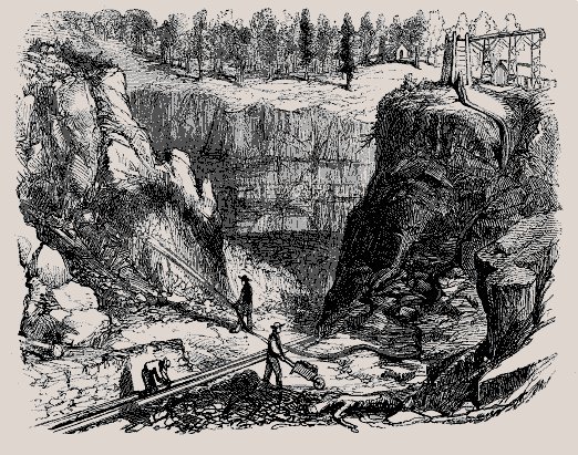 Mining History Resources Mining Glossary QUICK OVERVIEW OF SOME BASIC MINING TERMS ![]() A B C D E F G H I J K L M N O P Q R S T U V W X Y Z ![]() A Adit. A horizontal tunnel from surface to access an ore body. Aerial survey. An exploration survey made from an aircraft with photographic equipment and/or remote sensors that measure magnetism or radioactivity. Aerial tramway. A system for transporting ore or rock in buckets that are suspended from cables. Agglomeration. Sticking together of small mineral particles to form clusters or balls, usually in preparation for sintering or pelletizing. A clay binder may be used to hold the particles together. Alluvial, Alluvium. Deposits of sedimentary material such as sand, gravel, and silt, laid down in river beds, flood plains, lakes, or at the foot of mountain slopes. The waste material in placer mining. Amalgam. Alloy of mercury with another metal such as gold or silver. Amalgamation. Process by which gold and silver are extracted from finely crushed ore by passing them over a surface coated with mercury. The metals and mercury form an amalgam which is periodically scraped from the surface. The precious metals are then recovered by distillation of the mercury. AN/FO. Ammonium nitrate and fuel oil explosive. Anode, Copper anode. The positive side of the electrolytic cell. An anode is a rectangular plate of copper (or other metal) cast in a shape suitable for refining by an electrolytic process. Anomaly. Term applied to departure from normal or field characteristic, commonly used in geophysical prospecting for minerals. For example, in a magnetometer survey, an area showing much higher (or much lower) magnetic intensity than surrounding area would be identified as an anomaly. The anomaly might be considered a target for further exploration on the ground. Apex. Top or terminal edge of vein on the surface or its nearest point to surface. Apex Law. The law giving the owner of a claim containing the top of a vein the right to mine down the dip of the vein beyond the sidelines of the claim. Arrastra, Arrastre. A simple, primitive rock lined pit in which large stones attached to a horizontal wooden bar are dragged in a circular motion to crush and grind ore. Powered by a horse or mule walking in a circular path. Ash. The inorganic portion of a coal seam with little or no energy value. Ash is removed in coal cleaning processes. Assay. To test ores or minerals by chemical or other methods to determine amount of valuable metals contained. Assessment work. Amount of work specified by law that must be done each year to retain legal control of an unpatented mining claim. Auger, Auger mining. Removal of coal under a highwall by drilling adjacent large diameter horizontal holes into the coal with an auger. Autogenous grinding, Semi-autogenous grinding (SAG). Process of grinding ore in a rotating mill that uses large pieces of the ore being ground as the grinding medium instead of conventional steel balls or rods. Grinding balls are added in semi-autogenous grinding (SAG) mills. Top of the List B Back. Roof of tunnel or working chamber in a hardrock mine. Backfill. Material such as waste rock or mill tailings used to fill a mined out stope to prevent its collapse after mining. Ball mill. Piece of milling equipment used to grind ore into small particles. Crushed ore is fed into a cylindrical-shaped steel container filled with steel balls. As the mill is rotated, the balls cascade, grinding the ore. Base metal. Metal inferior in value to gold and silver, generally applied to commercial metals such as copper, zinc, and lead. Bedrock. Solid rock forming earth's crust, frequently covered by soil, overburden, or water. Belt conveyor. A continuously moving endless strip of rubber supported on rollers used to transport crushed material. Bench. Mining level or cut in an open pit mine. Beneficiation, Beneficiate. To concentrate or enrich ore. Generally applied to the preparation of ore before smelting. Includes such processes as crushing, grinding, washing, flotation, and magnetic separation. Biological leaching. Process for recovering metals from low-grade ores by dissolving them in a solution. The dissolution is aided by bacterial action. Bit. The cutting tool of a boring device. In rock drilling, the bit is frequently made with ultra-hard material such as tungsten carbide or diamonds. Black powder. An early type of mining explosive containing potassium nitrate, charcoal, and sulfur. Blast, Blasting. The ignition of explosives to break solid rock in a mine. Blasting Cap. A detonator used to ignite explosives. A length of fuse is attached to the cap to provide time for the miners to reach a safe place before the explosion. Modern blasting caps are electrically ignited. Blasting pattern. The layout of a series of blast holes to provide optimum breakage. Blast hole. Hole drilled for purposes of blasting rather than for exploration or geological information. Blast hole drill. A percussion or rotary drill used to create a series of holes for explosives in surface mining. Blister copper. Product of the Bessemer-type converter furnace used in copper smelting. An impure form of copper metal assaying about 99% copper. It requires further refining before being used for industrial purposes. Block caving. Low cost method of mining in which large blocks of ore are undercut, leaving the ore to break and cave under its own weight. Blockholing. Breaking undesirable large rocks in a pit or quarry by drilling short holes into them and blasting them with explosives. Bonanza. Very rich ore deposit producing at a profit. Borrasca. A worthless mine or mineral deposit yielding no profit. Box cut. The initial excavation to start a new, deeper level of an open pit mine. Breaker. A processing plant in which anthracite coal is crushed and sorted by size. Coal washing or cleaning may also be done. Breaker boy. Young boy who picks slate from coal in a breaker. Child labor laws outlawed this practi
