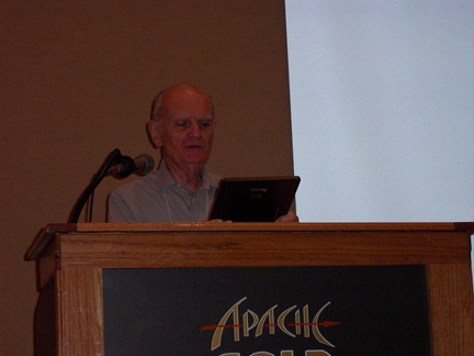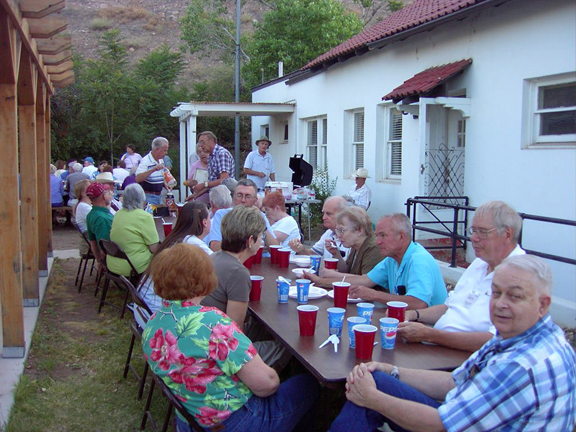 The railroad reached Globe in 1898, lowering freight costs for smelter coke and copper. In January 1899, the largest single shipment of Arizona copper to-date left Globe bound for customers. In 1904, the Old Dominion Company, controlled by Phelps-Dodge, took over the operations. World War I brought high demand for copper, high prices, and large profits. The labor unrest sweeping western copper mines hit Globe in July 1917. Federal troops were called in to restore order. A negotiated settlement of the strike brought the mine back into production by year-end. In 1919, 1400 men were employed at the Old Dominion. Continued financial ups and downs caused the smelter to close in 1924. The mine closed in 1931. Ore grades had declined to 2.25% copper. In 1940, the old Dominion properties were purchased by the Miami Copper Company to gain access to mine water for use in its operations in Miami. In nearby Miami, mining had expanded rapidly in the early 1900’s. The Miami Copper Company was founded in 1907. The Inspiration Consolidated Copper Company was formed in 1909, mining lower grade deposits originally held by the Old Dominion Mining Company. In 1915, the International Smelting and Refining Company smelter went into production, eliminating the need for the companies to ship their concentrates to Mexico or Utah for smelting. The Miami smelter was later renamed the International Smelting Company. After closure of the Old Dominion Smelter, the Globe concentrates were also sent to the International Smelter. In later years, underground mining gave way to surface mining. The area around Miami is now studded with open pits and dump leaching operations. The smelter at Miami uses modern technology that reduces air pollution. Ownership changes and consolidations of mining assets in Globe-Miami continue to the present. Inspiration became part of the Cyprus Minerals Company in 1988. It became Cyprus Amax Minerals Company in 1993. Cyprus Amax was purchased by Phelps-Dodge in 1999 and then subsequently merged with Freeport-McMoRan Copper and Gold in 2007. The Miami Copper Company was taken over by the Magma Copper Company which became part of Newmont Mining in 1969. Magma was spun-off by Newmont in 1987. In 1996 Magma was acquired by BHP. BHP merged with Billiton in 2001 and became BHP Billiton. Currently (2011) the operating mines in the greater Globe-Miami-Superior area include the Miami (Freeport-McMoRan), Carlota (QuadraFNX Mining, Ltd.), Pinto Valley (BHP Billiton), and Ray (ASARCO). An innovative new underground mine is in development in Superior to mine a deep portion of the Magma orebody (Resolution Copper Mining). (Adapted from the March 2006 Mining History News and expanded by Mike Kaas, 2011) CLICK HERE FOR PROGRAM SOCIAL EVENTS (SEE PHOTO GALLERY BELOW) Welcoming Reception, June 1, 2006, Gila County Historical Museum Presidential Luncheon, June 2, 2006, Apache Gold Casino Resort Awards Banquet, June 2, 2006, Apache Gold Casino Resort TOURS AND FIELD TRIPS (CLICK ON TRIPS BELOW TO VIEW PHOTO GALLERIES) Phelps-Dodge Copper Rod Plant, June 3, 2006 Pinal Creek Clean-up, June 3, 2006 Walking Tour of Bars and Brothels in Globe, June 3, 2006 Morenci Open Pit Mine, June 4, 2006 Theodore Roosevelt Dam, Salt River Project, June 4, 2006 GLOBE-MIAMI UPDATE ORGANIZING COMMITTEE James McBride, General Chair Bob Trennert, Program Chair VISITOR RESOURCES