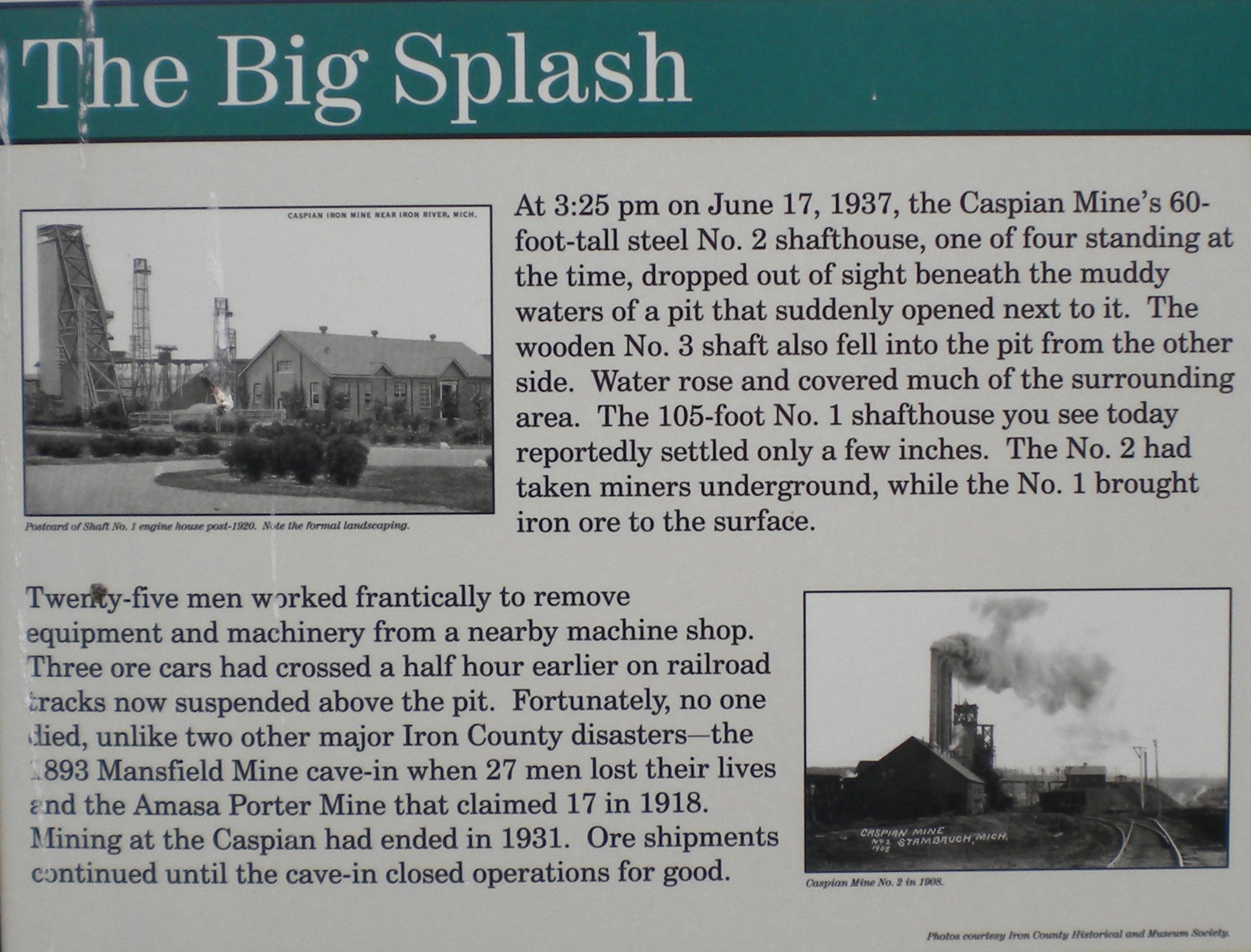 STOP 2.The Caspian No. 1 Headframe is the centerpiece of the Iron County Historical Museum.