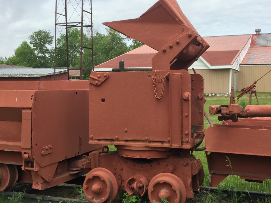 Eimco loaders, drill jumbos, and mine rail cars of various ages and designs were used in local mines.