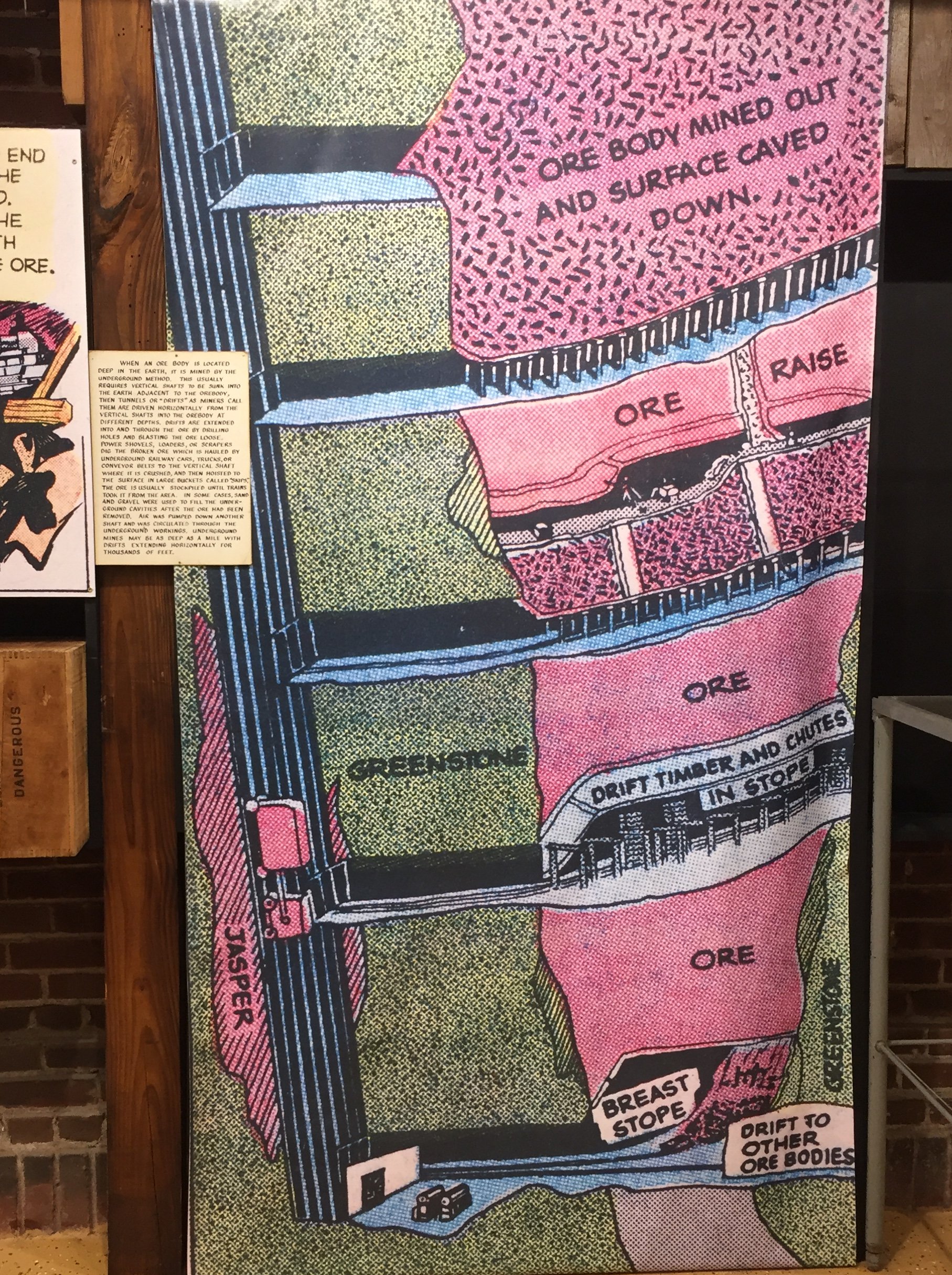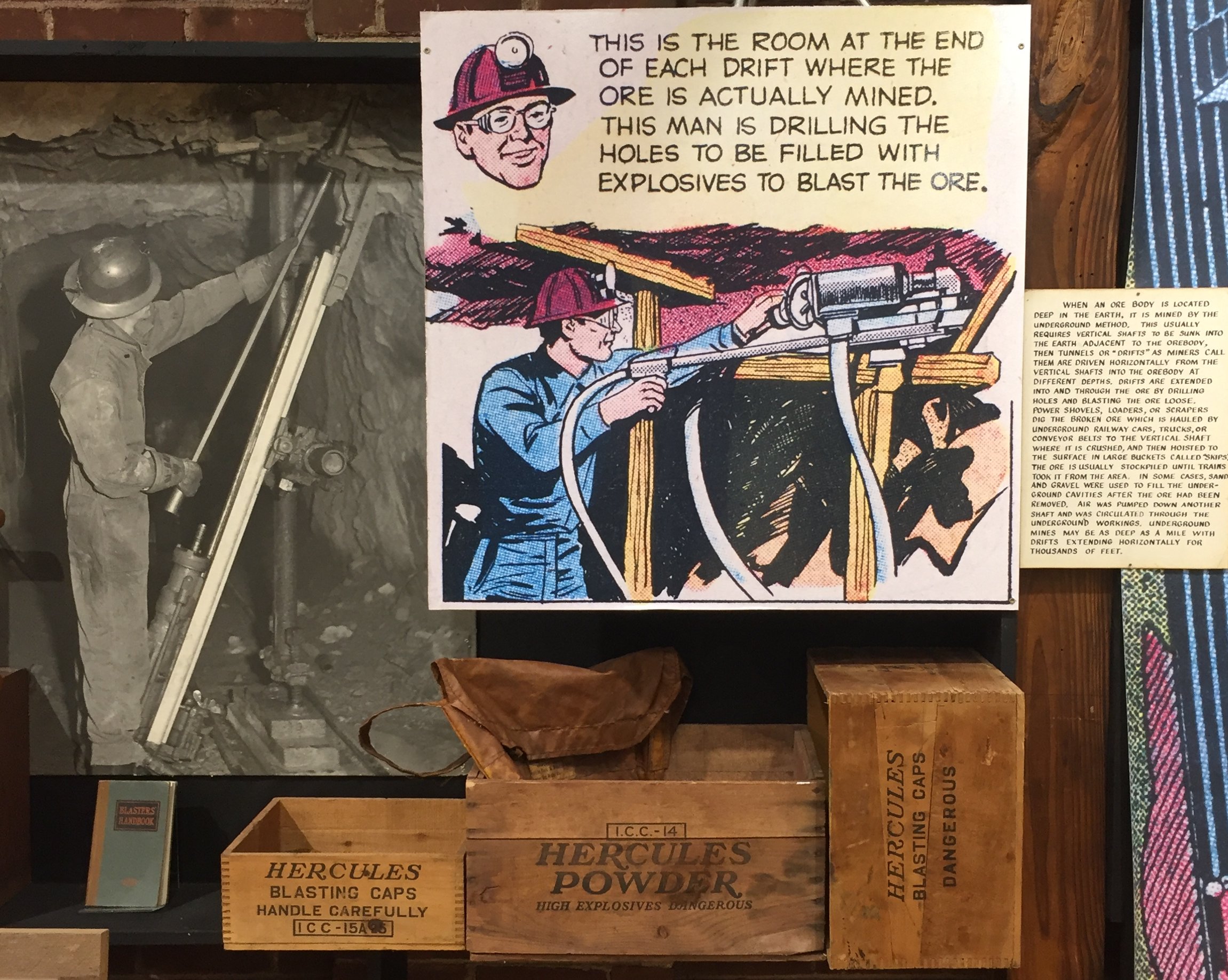(Right) Different mining methods used on the Menominee Range are shown in this exhibit.