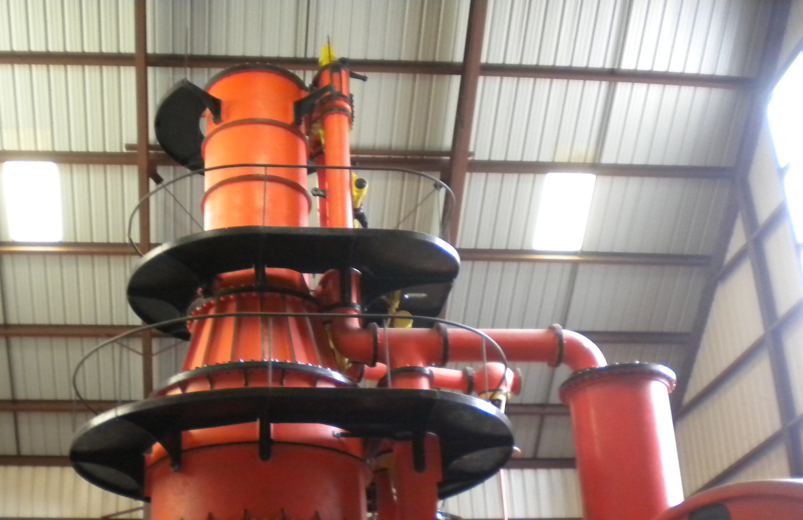 (Above)Once inside the museum, the first impression of the pump is its sheer size (too large for a single photo): 54 feet above the floor; 75 feet long; 100 inch diameter low pressure cylinder; 40 foot diameter flywheel; and weight, 725 tons. It pumped 3,190 gallons per minute.