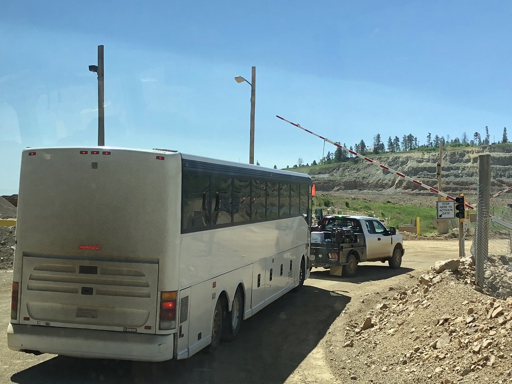 Our tour bus receives an escort as it drives into the active mining area.