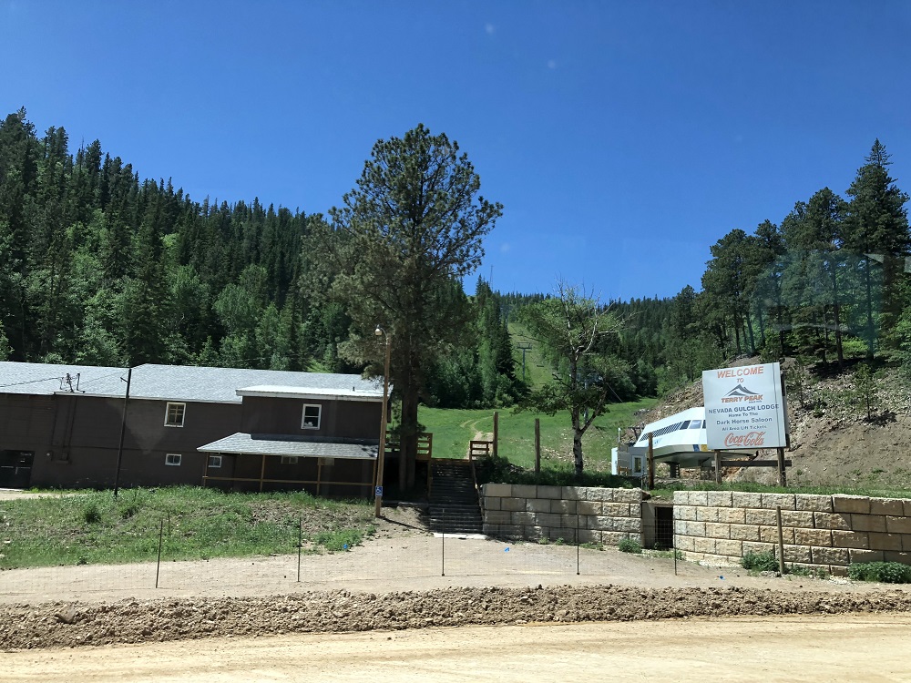 As we leave the mine, we pass the Terry Peak Ski Area, located at the end of Nevada Gulch, just south of the Coeur-Wharf Mine.