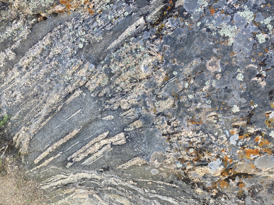 A closeup view of the Precambrian Gneiss that makes up most of the