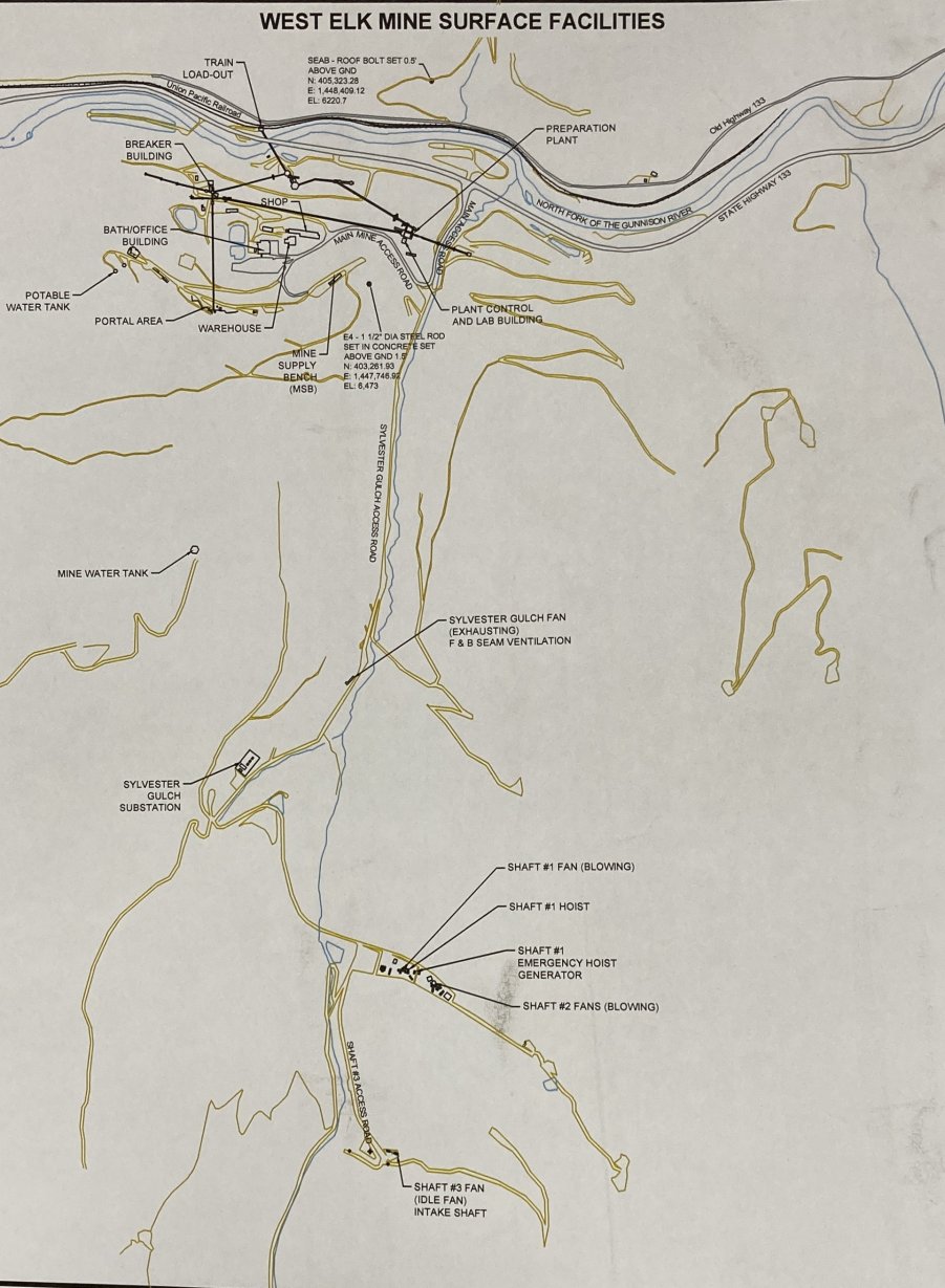 Aerial photo of the West Elk Mine complex and its surface facilities.