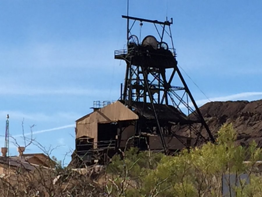 The Campbell Mine headframe viewed from Highway 92 near Lowell and Warren, AZ, south of Bisbee. Its ore body, discovered in 1929, was large and high grade (over 1 million tons, 8-10% copper). |