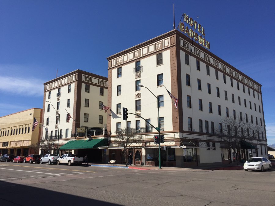 The Phelps Dodge Douglas Reduction Works (Smelter) is shown in 1940. It closed in 1887. The stack was demolished in 1991. Today only the slag dump remains. (Courtesy, Library of Congress) | .jpg) The Hotel Gadsden on “G” Avenue, the main business street in Douglas, is called “the last of the Grand Hotels.” It was built in 1907 during the heyday of the copper boom. | .jpg)