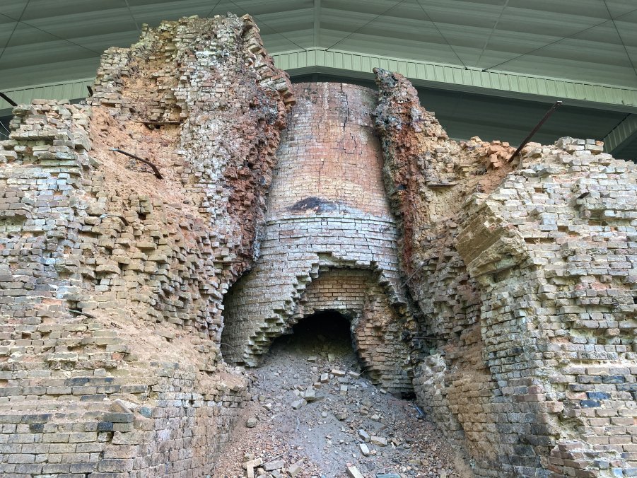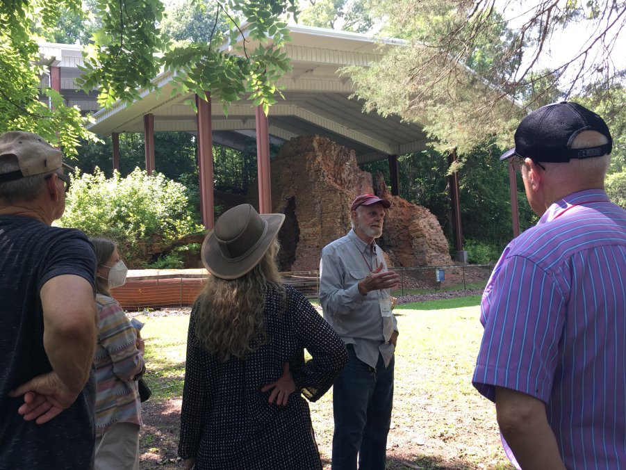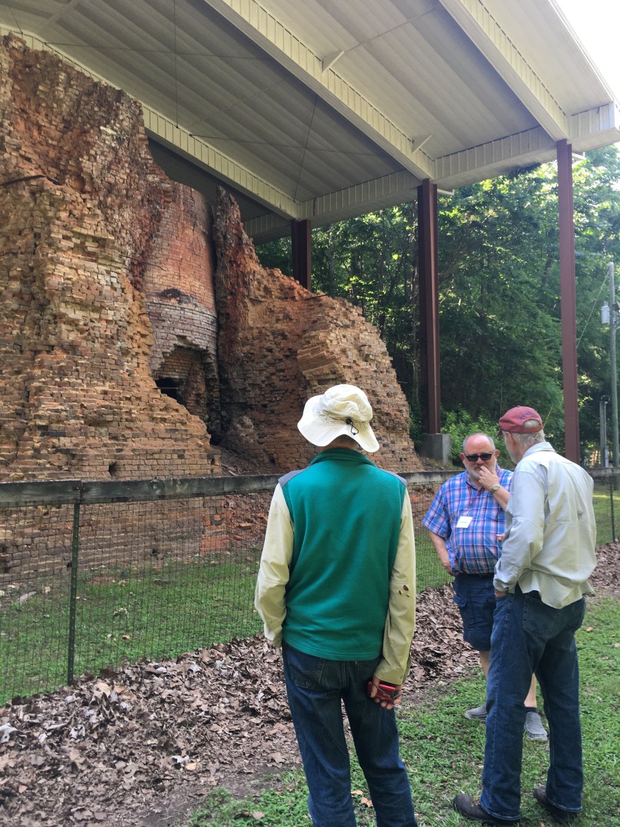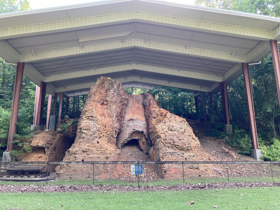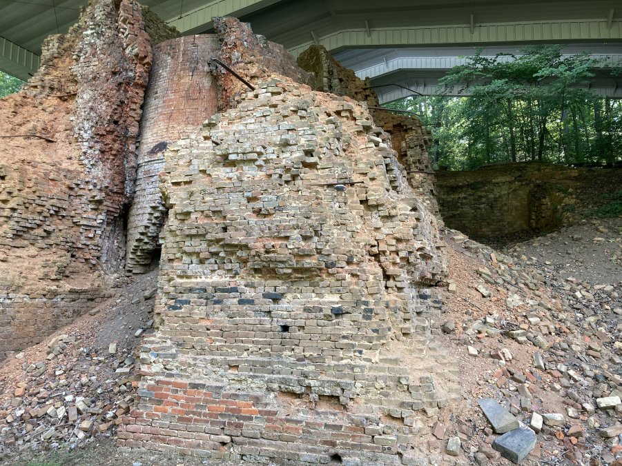 The Brierfield Ironworks Historical State Park in Brierfield, Alabama, preserves the Bibb and Brierfield iron furnace site which played an important role in supplying iron to the Confederacy during the Civil War. In 1861, Caswell Huckabee and other investors formed the Bibb County Iron Company. Huckabee provided most of the capital and enslaved workers. The No. 1 furnace was constructed and produced its first iron in November 1862. In 1862, the company also began construction of a wrought iron rolling mill located near the Alabama and Tennessee Railroad. A two- and one-half mile long tramway connected the furnace to the rolling mill. Recognizing the importance of the furnace/mill complex and its high quality of iron for manufacturing naval cannons, the Confederate government purchased the Brierfield ironworks in 1863. The No. 2 furnace whose ruins are seen today, was constructed adjacent to the No. 1 furnace (no longer present). The Bibb Furnace was renamed the Naval Ordnance Furnace. The rolling mill was completed. The new furnace could produce 25 tons of iron per day and the rolling mill, 10 tons per day. All production was sent to the Confederate Arsenal and Naval Ordnance Factory in Selma. Production continued at these facilities until March of 1865 when they were all destroyed by Union forces. After the Civil War, in 1865, General Josiah Gorgas, the ex-Chief of the Confederate Ordnance Bureau, and a group of investors formed the Canebreak Company which purchased the ironworks. Giles Edward, a Welsh ironmaster, rebuilt the No. 2 furnace. It was then renamed the Brierfield Furnace. Gorgas was Superintendent. He left in 1869 to become the President of the University of Alabama in Tuscaloosa. His home is preserved as a museum on the campus. From 1870 to its final closure in 1894, several different individuals and investor groups operated the ironworks. Dwindling supplies of charcoal forced the construction of coke ovens which enabled the first commercial scale production of pig iron using coke in Alabama. In the 1880s the operations thrived but eventually succumbed to competition from Pittsburg, Pennsylvania, iron and steel mills. The Brierfield Ironworks was listed on the National Register of Historic Places in 1976. Today it is administered by the Tannehill Historical State Park. |