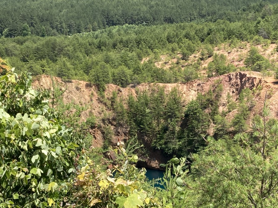 |  Early environmental court rulings and 1907 legislation forced the construction of acid plants to recover the sulfur dioxide but it would take decades to see substantial progress. The barren hills were referred to as the “Tennessee Desert” and the “Ducktown Desert.” Astronauts could see the devastation from outer space. Reforestation efforts began in the 1930s and are still underway. Fortunately, substantial progress has been made (covered in Gallery 3). The Isabella Mine area is at the center. | | Updated October 10, 2022 | |