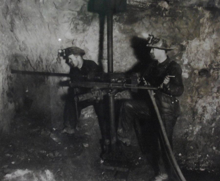 |  The museum exhibits and its archival collection contain countless photos of mining and processing in the Copper Basin. These miners are drilling at the face during the time when carbide lights were used underground.