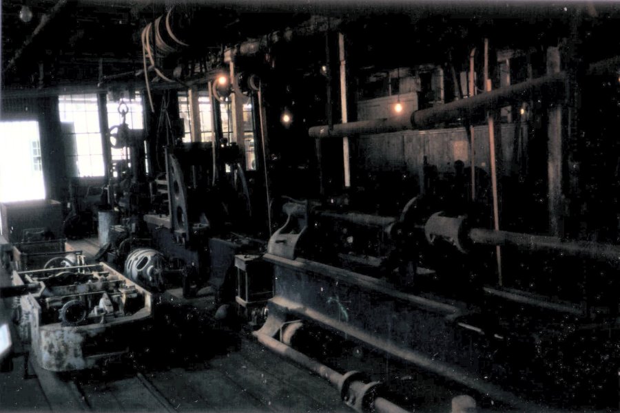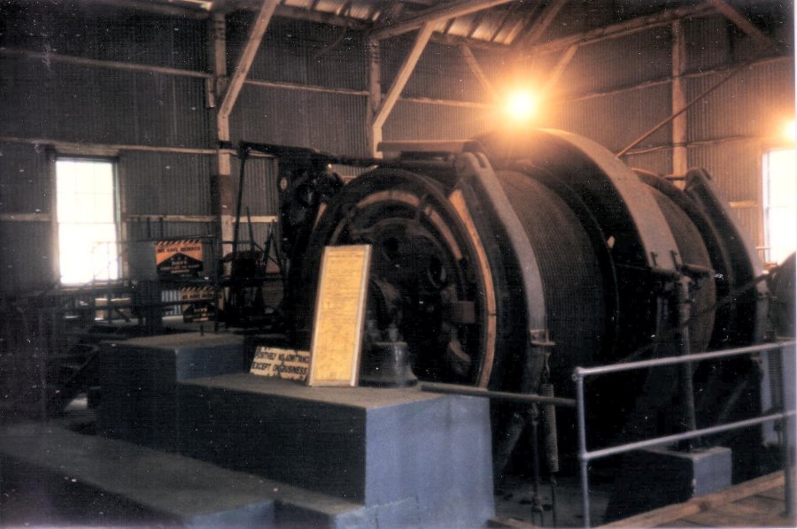 The original headframe was mostly demolished. A short section of the inclined track can be seen. The inclined shaft is illuminated to provide visitors with a look underground.