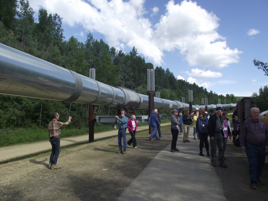 Above)MHAers examine an elevated portion of the Trans Alaska Pipeline.
