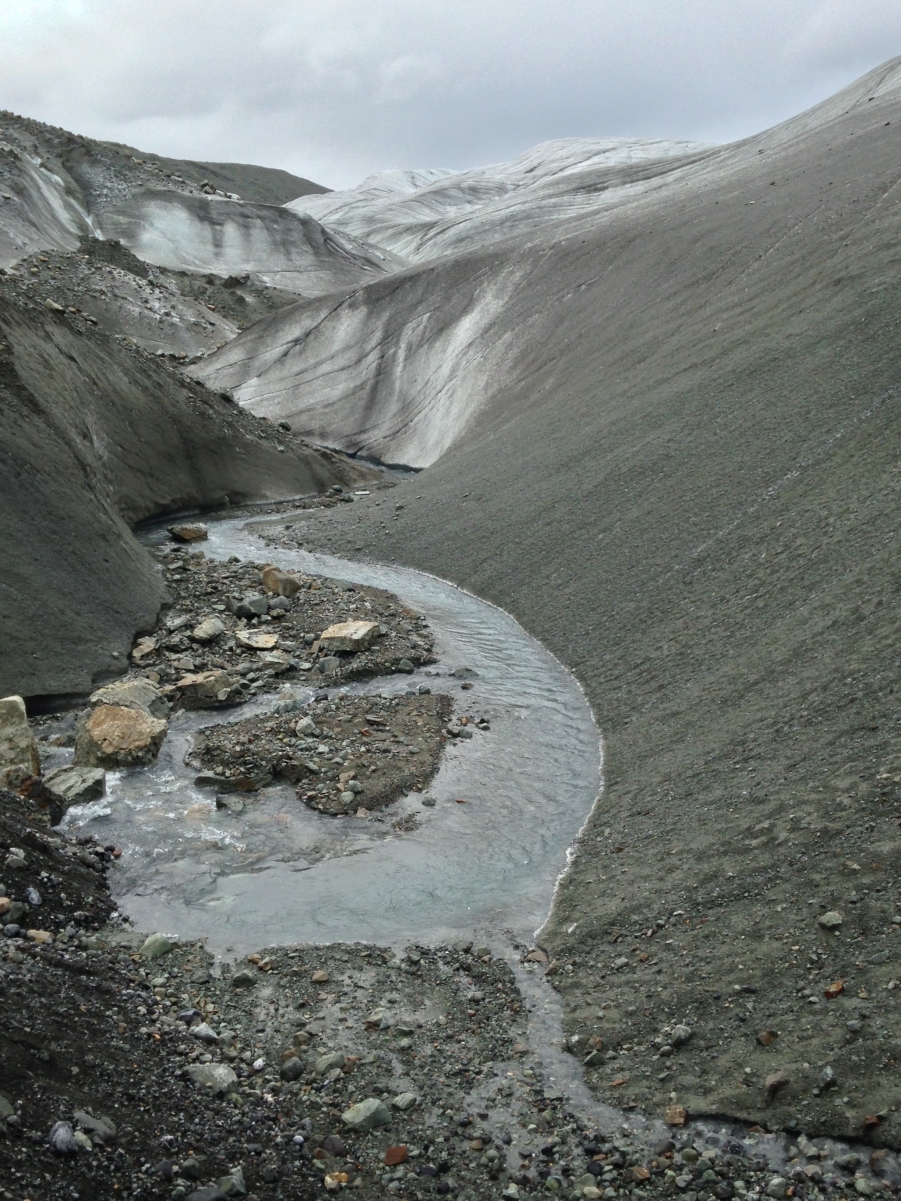 The melt water is draining from the toe of the Root Glacier and into the moraine.