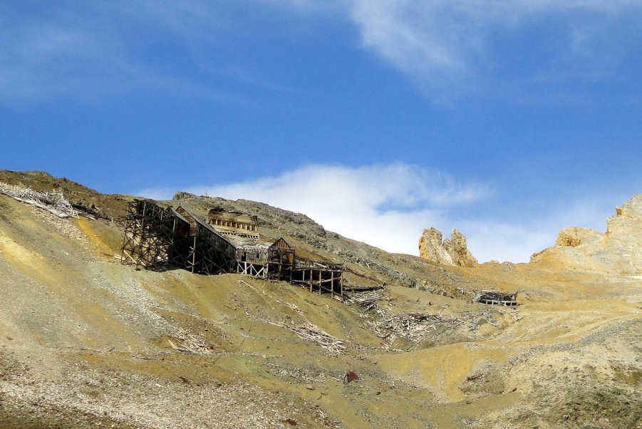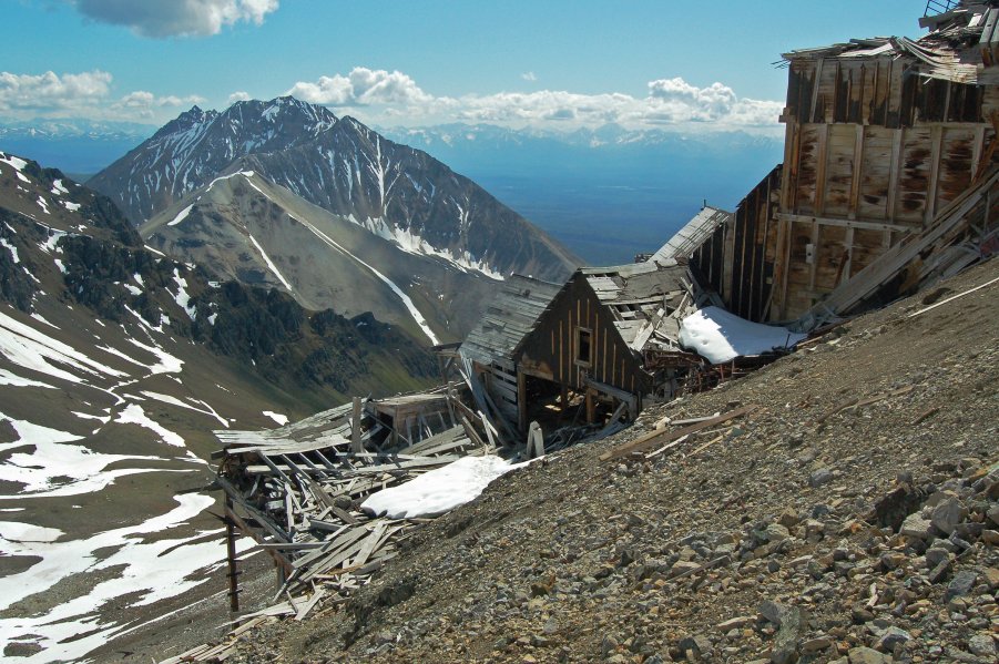 NATIONAL HISTORIC LANDMARK The Bonanza ore deposit was discovered in 1900 and went into production in 1911. Production expanded when the Copper River and Northwestern Railway was completed. It remained in production until the mines were closed in 1938. Today, little remains of the bunkhouse where the miners lived. Prior to closure the ore from all of the mines was being transported to the mill via the Bonanza Tramway. The remains of the tramway station are the most prominent structures at the mine site. CLICK HERE For Photo Gallery 3 |