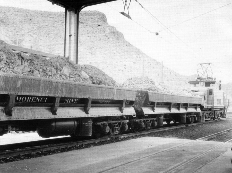 Electric Locomotives Pull Ore Trains in the Morenci Pit, 1940’s (Courtesy Phelps Dodge)