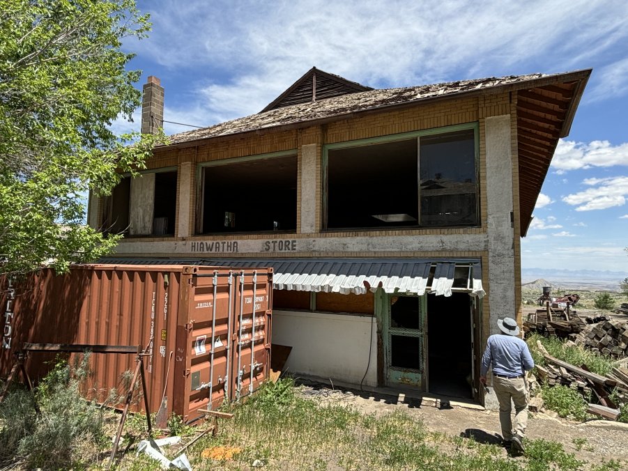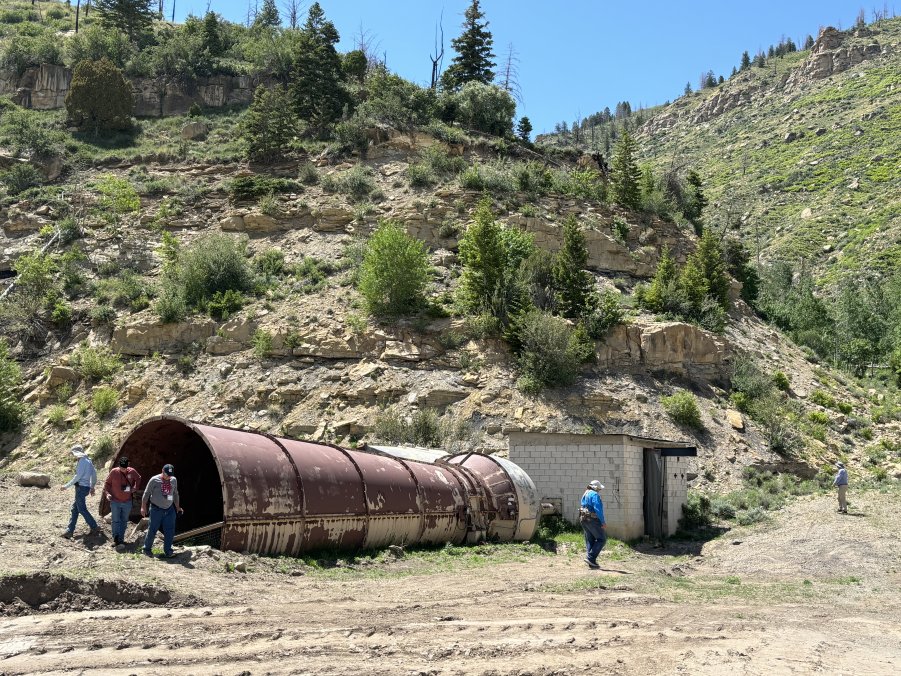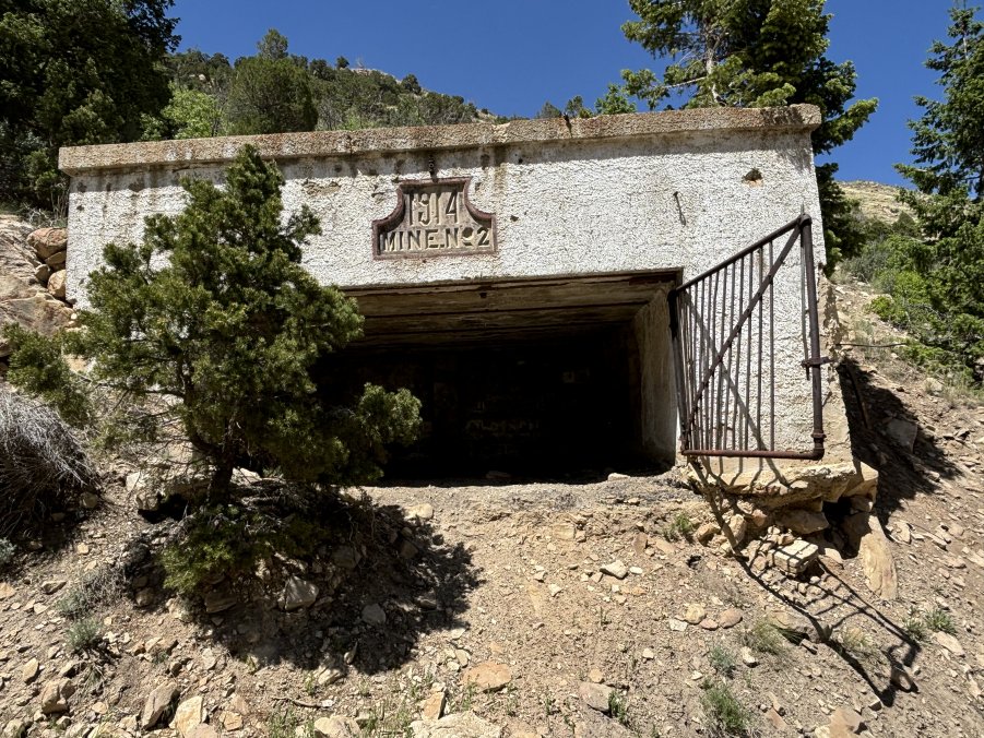 The MHAers arrive at Mine No. 4. Note the wildland fire damage on the slopes.