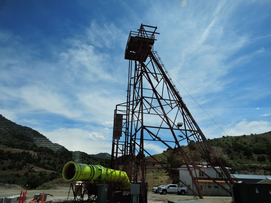 The headframe of the Trixie Mine is equipped with a ventilation fan.