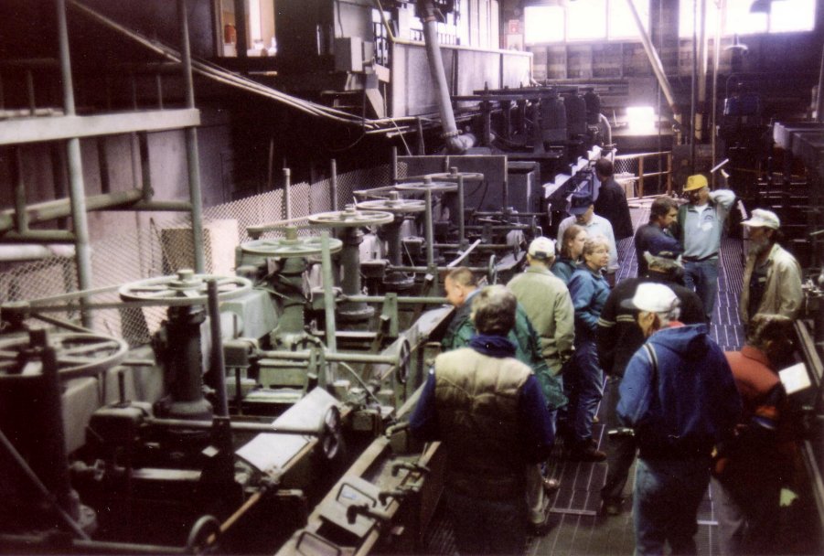 (Above)MHAers explore the recesses of the Mayflower Mill. The flotation cells (Left) recovered the various concentrates containing lead, zinc, copper, silver, and gold.