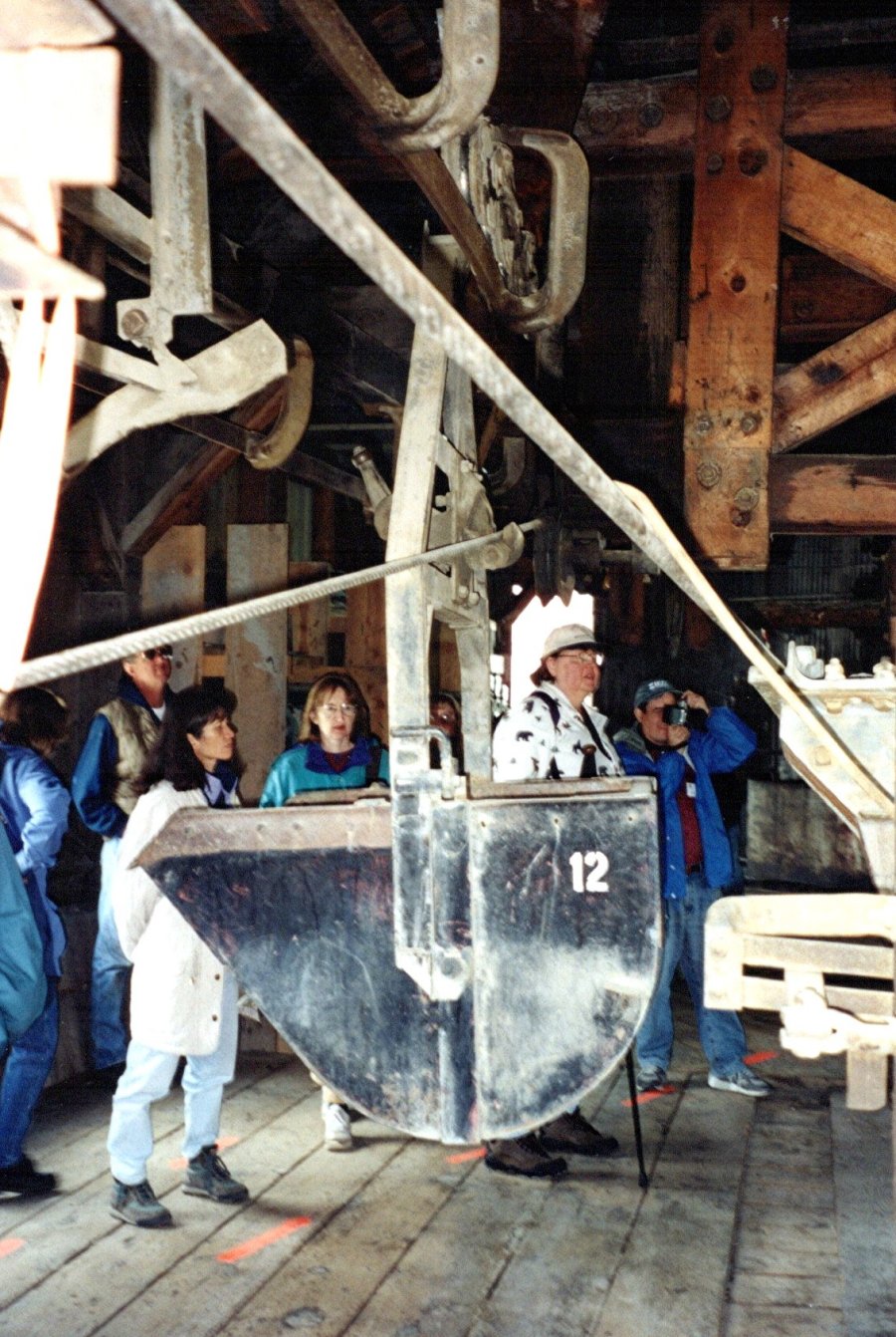 The tramway buckets not only brought ore down from the mine but also provided transportation up and down for the miners.