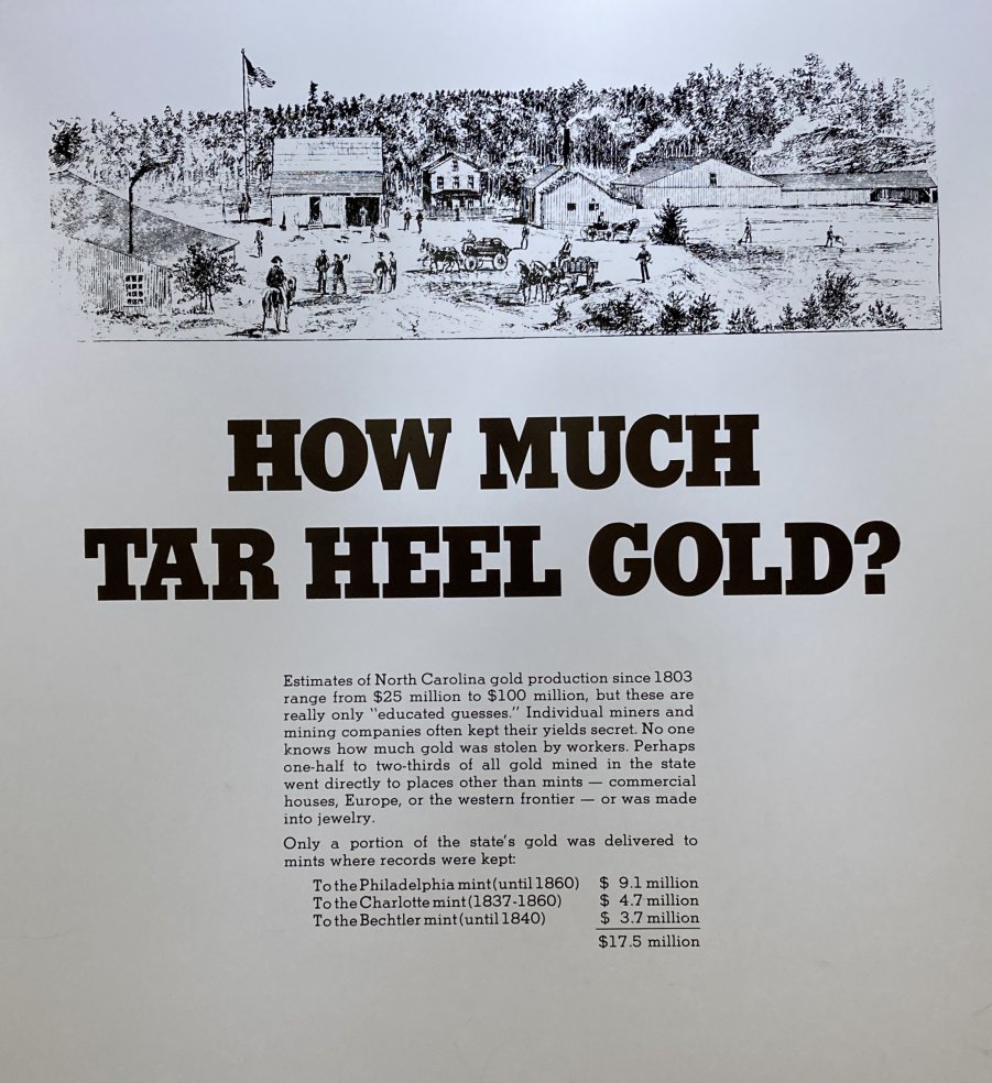 “Generalized Geologic Map of North Carolina,” North Carolina Geological Survey, (Raleigh: North Carolina Department of Environment, Health, and Natural Resources, 1993). Accessed, August 11, 2022, https://deq.nc.gov/about/divisions/energy-mineral-and-land-resources/north-carolina-geological-survey/ncgs-publications/statewide-geologic-maps-north-carolina. Richard F. Knapp and Brent D. Glass, “Gold Mining in North Carolina: A Bicentennial History,” (Raleigh: North Carolina Department of Cultural Resources, 1999). P. Albert Carpenter, III, “Gold in North Carolina,” Information Circular 29, North Carolina Geological Survey, (Raleigh: North Carolina Department of Environment, Health, and Natural Resources, 1993). Accessed, August 11, 2022, https://cdm16062.contentdm.oclc.org/digital/collection/p16062coll9/id/251301. |