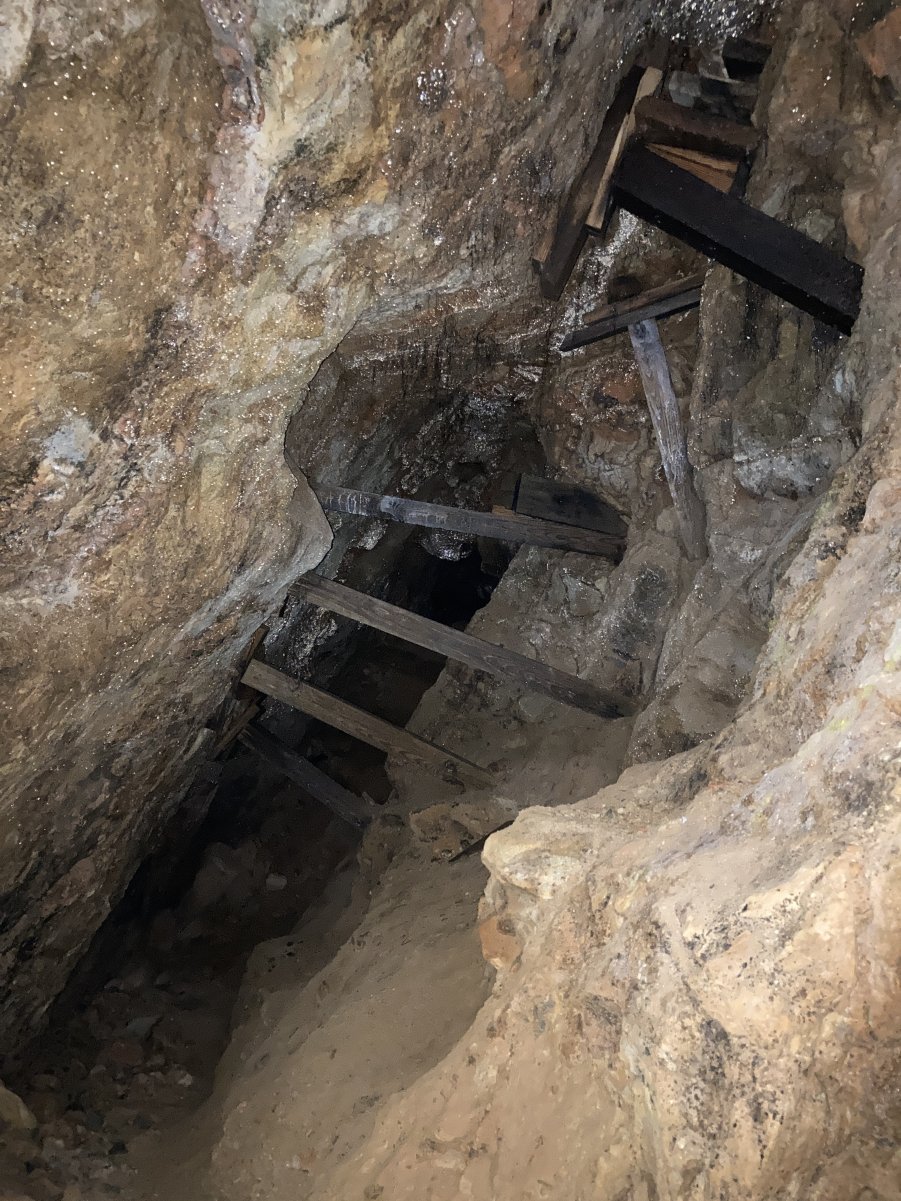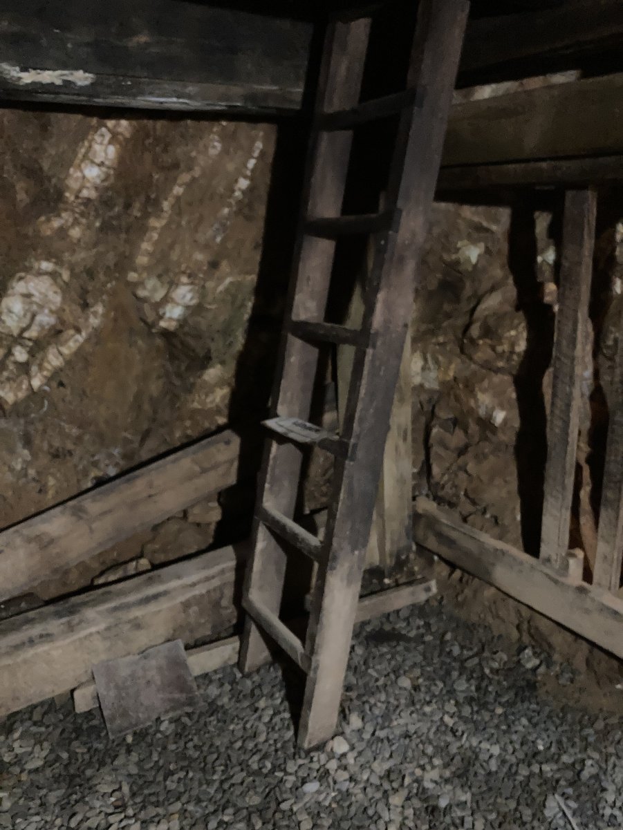In this stope one can see that that, whenever possible, the miners only mined the quartz vein material containing the gold. Barren rock was not mined.