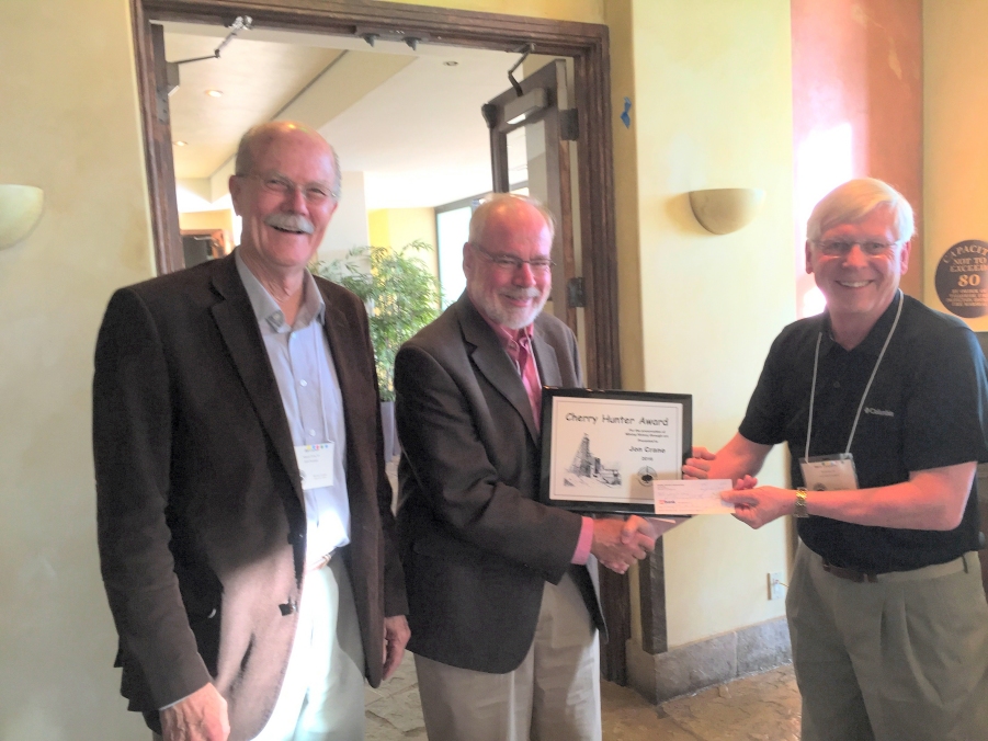 David Wolff accepts the Cherry Hunter Award for artist, John Crane (not present).The presentation was made by Mark Langenfeld (right) and Bill Culver (left).