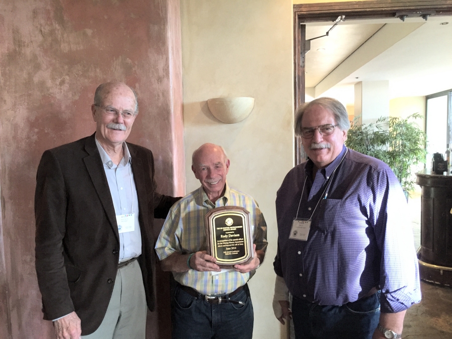 Rudy Davison accepts the Ed Hunter Distinguished Service Award from Ed Raines (right) and Bill Culver (left).