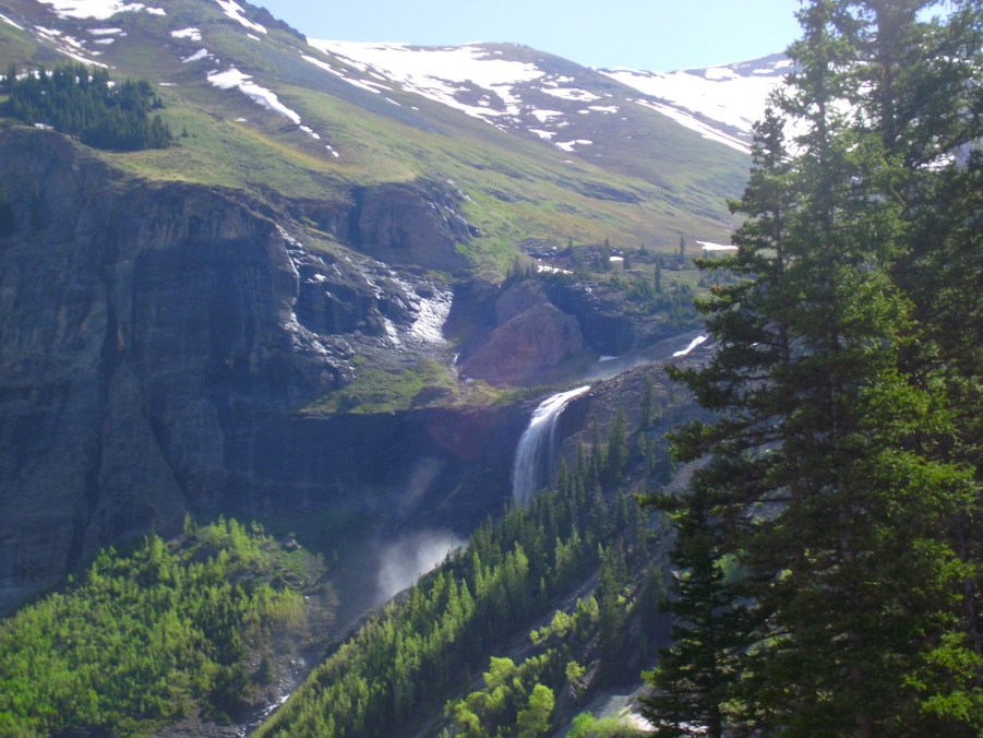 The spring runoff has swelled Ingram Falls as it spills over the canon rim at the east end of Telluride Valley. The falls are 280 feet high.