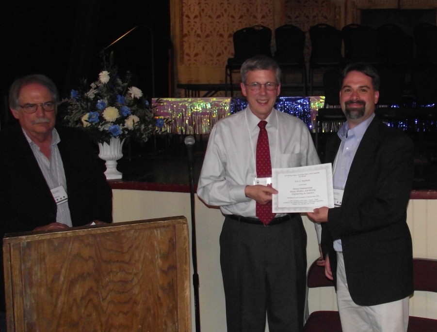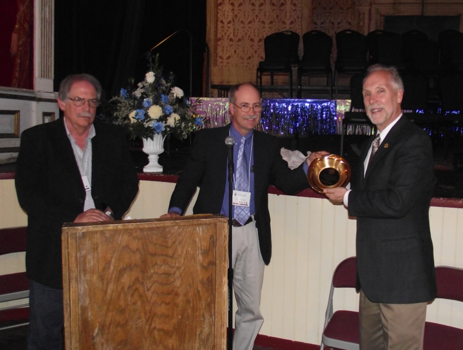 Keith Long (center) presenting the 2013-2014 Clark C. Spence Award to Eric Nystrom for his book “Seeing Underground: Maps, Models, and Mining Engineering in America.”
