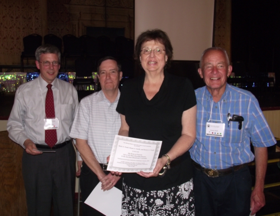 Mark and Karen Vendl and Duane Smith (right) receive the 2013-2014 Mary Lee Spence Award from Keith Long for their book, “My Home at Present: Life in the Mine Boarding Houses in the San Juan Mountains, Colorado.”