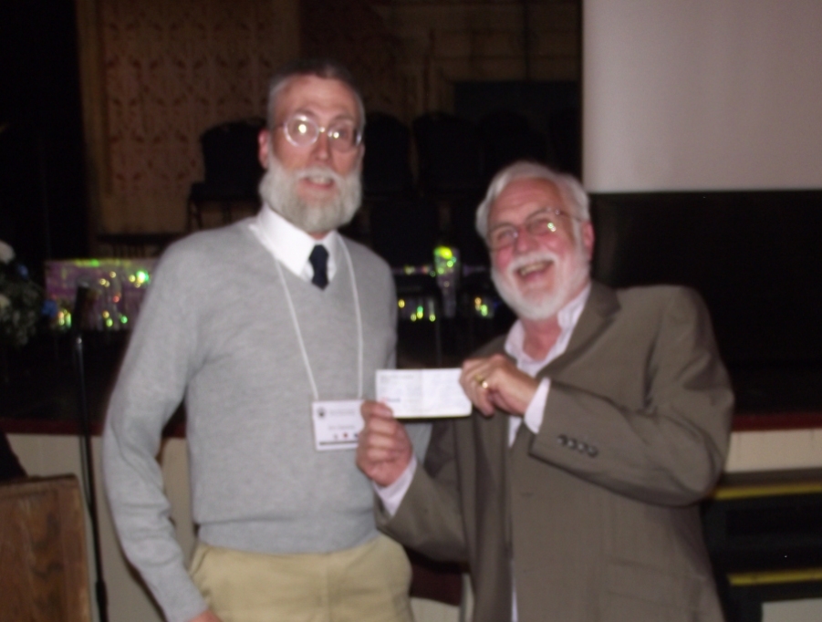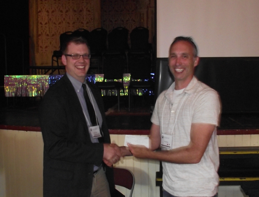 Paul White (right), University of Alaska, receives a 2015 MHA Research Grant from Brian Leech.Other grant recipients were Jane Bardal, Central New Mexico Community College, and Nathan Delaney, Case Western Reserve University.
