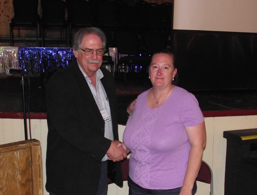 Barbara Clements (right) receives the 2015 Distinguished Service Award from Ed Raines.Barbara is the compositor for the Mining History Journal and the Facebook Coordinator.