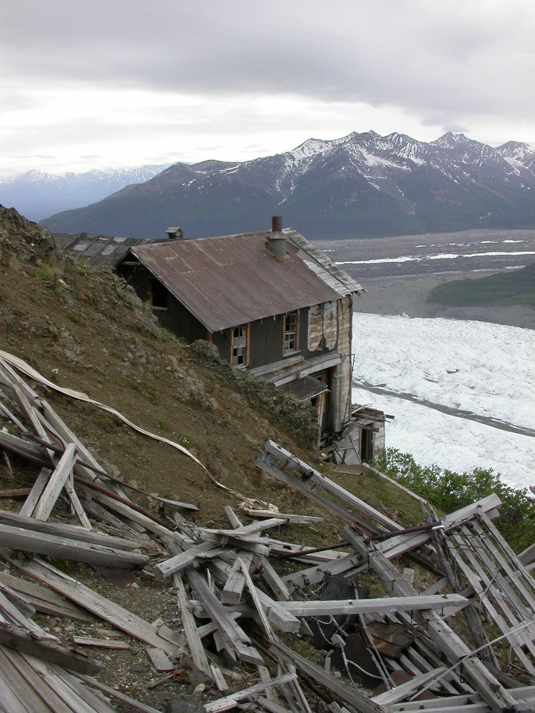 NATIONAL HISTORIC LANDMARK The smallest of the four Kennecott underground mines was the Erie Mine. Production started in 1916. It was located to the west of the other mines, about 3000 feet above the Root Glacier. Initially, its steep, mine mouth tramway lowered the ore to a road below. Ore wagons would take it the rest of the way to the mill. Later on, the mine was connected to the other mines through a tunnel. The Jumbo tramway was then used for ore transport directly to the mill. Today, the mine can be viewed from the Root Glacier/Erie Mine Trail; however, this trail does not go all the way to the mine. CLICK HERE FOR THE INDEPENDENCE MINE VISIT CLICK HERE TO RETURN TO THE FAIRBANKS MEETING PAGE |