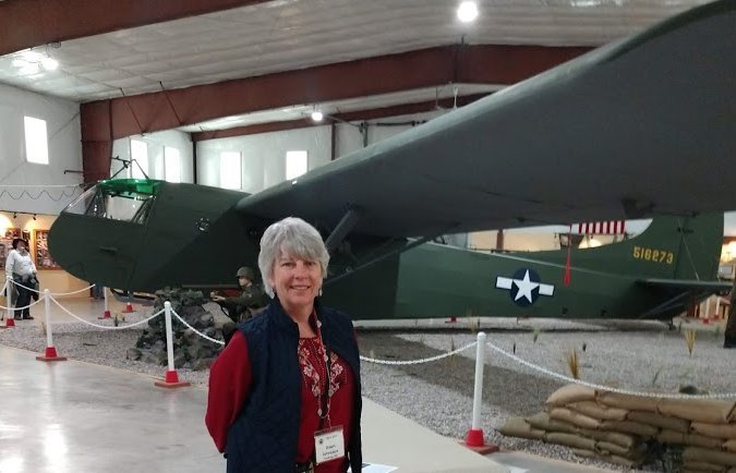 The Cornish Pump and Mine Museum had an interesting, non-mining surprise ready for the MHAers, a World War II era CG-4A Glider (shown below with Dawn). During the War, the Ford Motor Company manufactured over 4,000 of these unpowered gliders at its plant in Kingsford, MI, just outside of Iron Mountain. With a wingspan of 83.5 feet and a length of 48 feet, each glider could carry a payload of 7,500 pounds (13 soldiers or military equipment). Gliders were used in numerous engagements from 1942-1945, including the D-Day Invasion of Normandy in June of 1944.