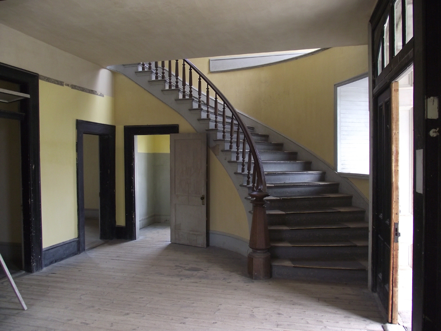 Drug Store and Hotel Meade, Original Beaverhead County Courthouse (1875), near the Site of the First Montana Legislature (1864) |  Partial Restoration of the Hotel Meade Lobby | Restored Home of Doctor Ryburn |  Backyard View Looking Down Grasshopper Creek, Site of the Early Placer Mines |