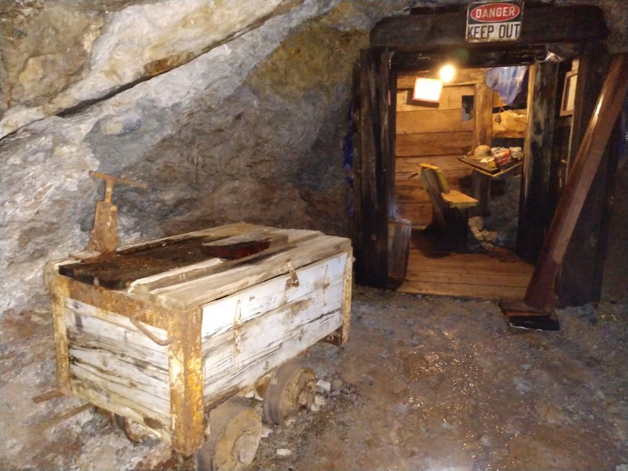 Along the entrance drift the mine Foreman’s underground office in a short side tunnel. |