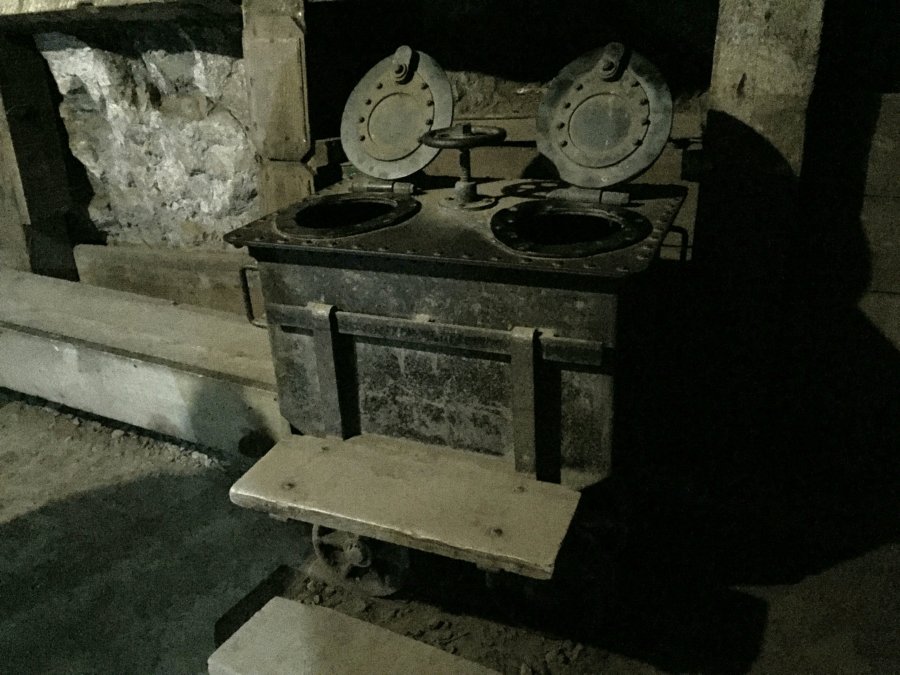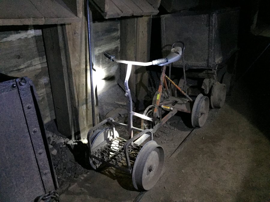 One of the more curious things seen on the tour was this bicycle used by foremen to travel from one part of the mine level to another. |  Another curiosity is shown above. Even an underground mine the miners have to answer the call of nature. |