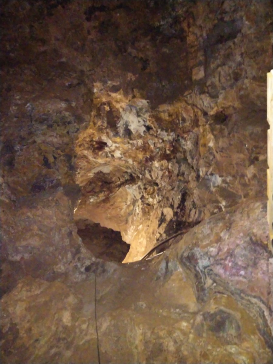 Visitors suit up with hard hats and miners’ lamps before heading underground. | The mine train takes visitors to an underground stope where the mining process is explained and the copper ore can still be seen.