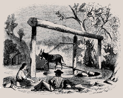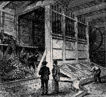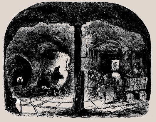 Mining History Resources Mining Glossary QUICK OVERVIEW OF SOME BASIC MINING TERMS ![]() A B C D E F G H I J K L M N O P Q R S T U V W X Y Z ![]() A Adit. A horizontal tunnel from surface to access an ore body. Aerial survey. An exploration survey made from an aircraft with photographic equipment and/or remote sensors that measure magnetism or radioactivity. Aerial tramway. A system for transporting ore or rock in buckets that are suspended from cables. Agglomeration. Sticking together of small mineral particles to form clusters or balls, usually in preparation for sintering or pelletizing. A clay binder may be used to hold the particles together. Alluvial, Alluvium. Deposits of sedimentary material such as sand, gravel, and silt, laid down in river beds, flood plains, lakes, or at the foot of mountain slopes. The waste material in placer mining. Amalgam. Alloy of mercury with another metal such as gold or silver. Amalgamation. Process by which gold and silver are extracted from finely crushed ore by passing them over a surface coated with mercury. The metals and mercury form an amalgam which is periodically scraped from the surface. The precious metals are then recovered by distillation of the mercury. AN/FO. Ammonium nitrate and fuel oil explosive. Anode, Copper anode. The positive side of the electrolytic cell. An anode is a rectangular plate of copper (or other metal) cast in a shape suitable for refining by an electrolytic process. Anomaly. Term applied to departure from normal or field characteristic, commonly used in geophysical prospecting for minerals. For example, in a magnetometer survey, an area showing much higher (or much lower) magnetic intensity than surrounding area would be identified as an anomaly. The anomaly might be considered a target for further exploration on the ground. Apex. Top or terminal edge of vein on the surface or its nearest point to surface. Apex Law. The law giving the owner of a claim containing the top of a vein the right to mine down the dip of the vein beyond the sidelines of the claim. Arrastra, Arrastre. A simple, primitive rock lined pit in which large stones attached to a horizontal wooden bar are dragged in a circular motion to crush and grind ore. Powered by a horse or mule walking in a circular path. Ash. The inorganic portion of a coal seam with little or no energy value. Ash is removed in coal cleaning processes. Assay. To test ores or minerals by chemical or other methods to determine amount of valuable metals contained. Assessment work. Amount of work specified by law that must be done each year to retain legal control of an unpatented mining claim. Auger, Auger mining. Removal of coal under a highwall by drilling adjacent large diameter horizontal holes into the coal with an auger. Autogenous grinding, Semi-autogenous grinding (SAG). Process of grinding ore in a rotating mill that uses large pieces of the ore being ground as the grinding medium instead of conventional steel balls or rods. Grinding balls are added in semi-autogenous grinding (SAG) mills. Top of the List B Back. Roof of tunnel or working chamber in a hardrock mine. Backfill. Material such as waste rock or mill tailings used to fill a mined out stope to prevent its collapse after mining. Ball mill. Piece of milling equipment used to grind ore into small particles. Crushed ore is fed into a cylindrical-shaped steel container filled with steel balls. As the mill is rotated, the balls cascade, grinding the ore. Base metal. Metal inferior in value to gold and silver, generally applied to commercial metals such as copper, zinc, and lead. Bedrock. Solid rock forming earth's crust, frequently covered by soil, overburden, or water. Belt conveyor. A continuously moving endless strip of rubber supported on rollers used to transport crushed material. Bench. Mining level or cut in an open pit mine. Beneficiation, Beneficiate. To concentrate or enrich ore. Generally applied to the preparation of ore before smelting. Includes such processes as crushing, grinding, washing, flotation, and magnetic separation. Biological leaching. Process for recovering metals from low-grade ores by dissolving them in a solution. The dissolution is aided by bacterial action. Bit. The cutting tool of a boring device. In rock drilling, the bit is frequently made with ultra-hard material such as tungsten carbide or diamonds. Black powder. An early type of mining explosive containing potassium nitrate, charcoal, and sulfur. Blast, Blasting. The ignition of explosives to break solid rock in a mine. Blasting Cap. A detonator used to ignite explosives. A length of fuse is attached to the cap to provide time for the miners to reach a safe place before the explosion. Modern blasting caps are electrically ignited. Blasting pattern. The layout of a series of blast holes to provide optimum breakage. Blast hole. Hole drilled for purposes of blasting rather than for exploration or geological information. Blast hole drill. A percussion or rotary drill used to create a series of holes for explosives in surface mining. Blister copper. Product of the Bessemer-type converter furnace used in copper smelting. An impure form of copper metal assaying about 99% copper. It requires further refining before being used for industrial purposes. Block caving. Low cost method of mining in which large blocks of ore are undercut, leaving the ore to break and cave under its own weight. Blockholing. Breaking undesirable large rocks in a pit or quarry by drilling short holes into them and blasting them with explosives. Bonanza. Very rich ore deposit producing at a profit. Borrasca. A worthless mine or mineral deposit yielding no profit. Box cut. The initial excavation to start a new, deeper level of an open pit mine. Breaker. A processing plant in which anthracite coal is crushed and sorted by size. Coal washing or cleaning may also be done. Breaker boy. Young boy who picks slate from coal in a breaker. Child labor laws outlawed this practi
