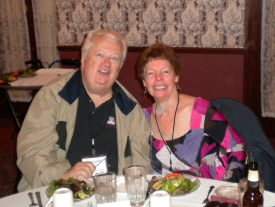 Richard Lingenfelter (left) receives the Clark C. Spence Award from David Wolff for his 2 volume set of books, “Bonanzas and Borrascas: Gold lust and Silver Sharks, 1848-1884” and “Bonanzas and Borrascas: Copper Kings and Stock Frenzies, 1885-1918.”