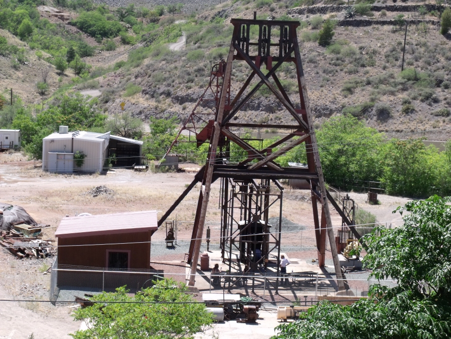 The recently restored Audrey Headframe of the United Verde Extension Mine.  The Little Daisy Headframe is at the rear.