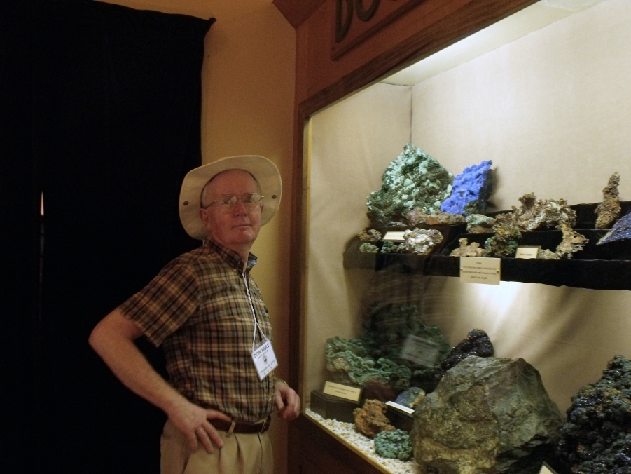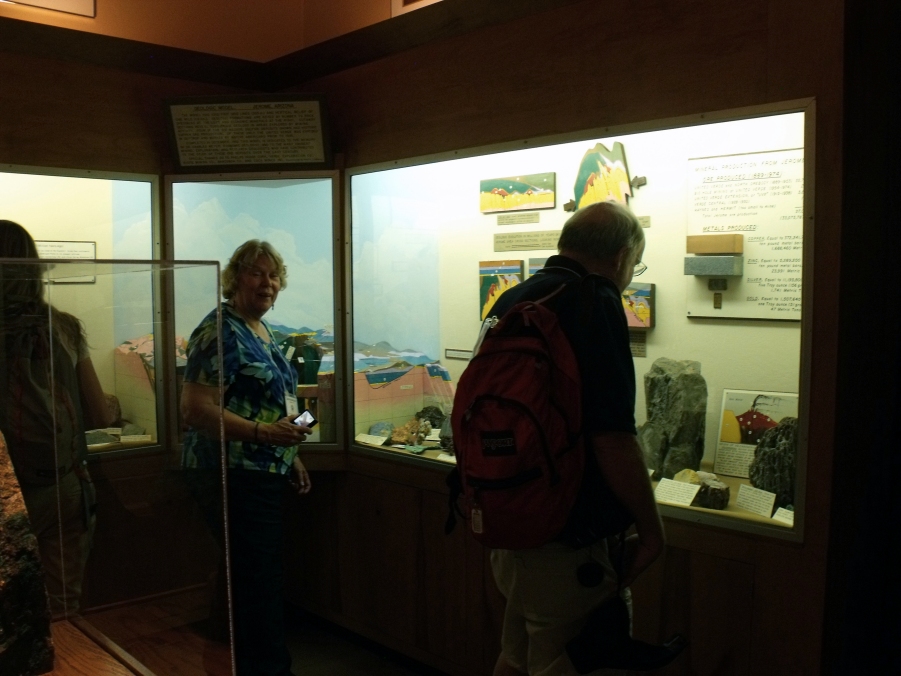 Jan Rasmussen and Bob Spude view the geology exhibits in the mansion.