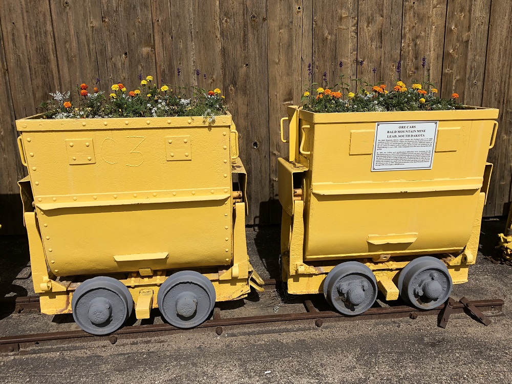 These mine ore cars came from the Bald Mountain Mining District, a few miles northwest of Lead.