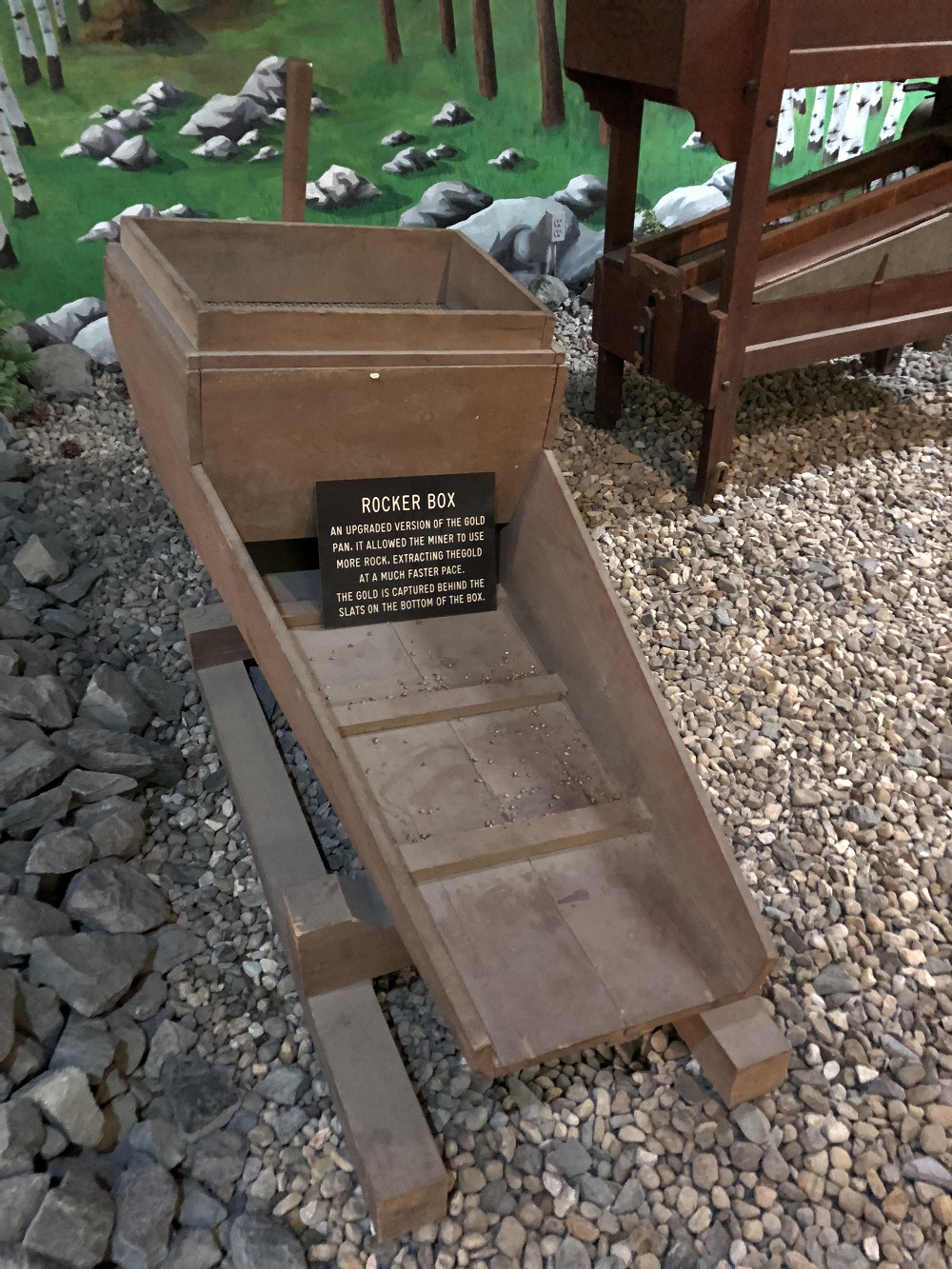 (Right) Placer miners used rockers like this one to work their claims in a more efficient manner than with a gold pan.