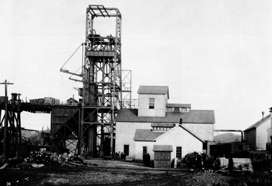 Historic view of the Ludington C Shaft with pump engine house next to the headframe (ca1907).This was the second and final location of the Cornish engine.