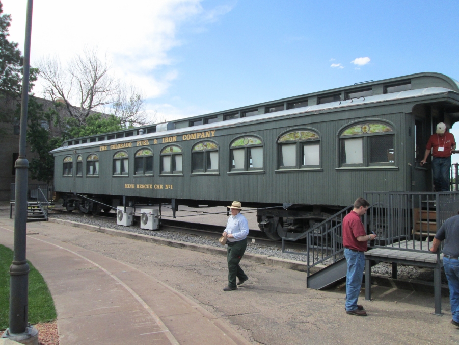CF&I Mine Rescue Car No. 1 is the last of these railroad cars.It was originally deployed by the U. S. Bureau of Mines (USBM) in Trinidad, CO in 1910.Joseph Holmes, the first Director of the Bureau is credited with concept of the rescue cars to assist at and investigate mine disasters (USBM Photo).E. H. Wetzel of CF&I Fuels Department put together the first rescue car in response to the deadly 1910 explosion at the Primero Mine.